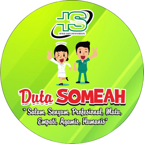 Duta SOMEAH merupakan strategi baru yang sedang dikembangkan di RSUD Sumedang dalam upaya menjawab keinginan dan harapan masyarakat pengguna layanandi RSUD Sumedang, agar pelayanan yang dirasakan terus meningkat terutama dalam hal keramahtamahan. Adapun Duta SOMEAH mengandung makna yang luasbukan hanya menggambarkan SIKAP ORANG SUNDA YANG BAIK HATI tapi mengandung makna SALAM DAN SENYUM, PROFESIONAL, MUTU, EMPATI, AGAMIS, DAN HUMANIStentunya mencerminkan Petugas Kesehatan yang ramah, bersahabat, profesional, cepat, berkualitas, religius dan melayani dengan sepenuh hati.Dengan bantuan anda diharapkan Duta SOMEAH dapat hadir dan dirasakan sebagai gerakan baru yang masif sehingga membentuk budaya HOSPITALITY (keramahtamahan)sebagai BRAND IMAGE layanan publik khususnya di Rumah Sakit.